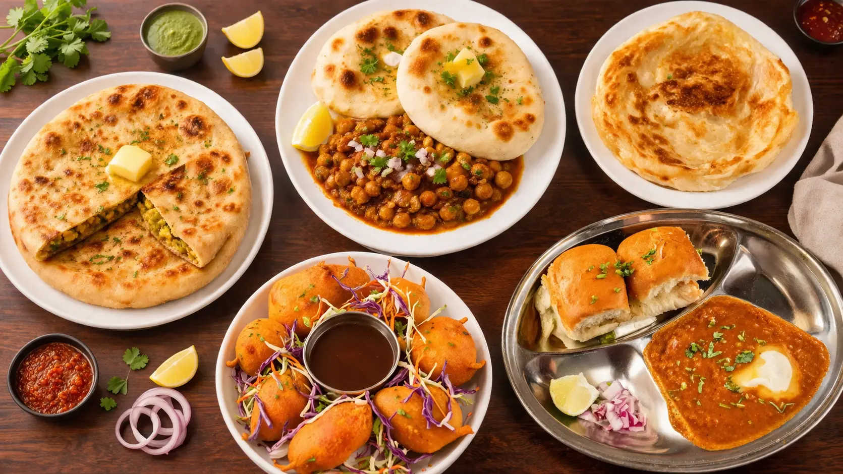Tangy spiced chickpeas (chana) served with soft, pillowy kulcha bread topped with butter. A North Indian street food classic featured in our buffet and promotional materials. Flavorful, filling, and perfectly balanced for lunch or dinner.